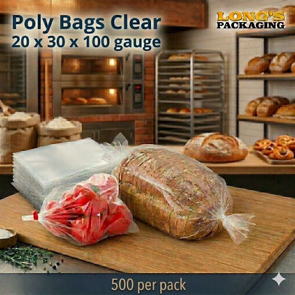 Poly Bags Clear LDPE XG 20 x 30 x 100g – 500 per pack