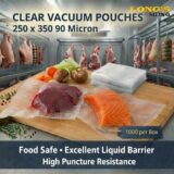 These clear vacuum pouches (250 x 350mm, 90 micron) are designed for reliable food storage, preservation, and professional packaging. Made from high-quality, food-safe materials, they provide excellent durability and puncture resistance, ensuring a strong, airtight seal.