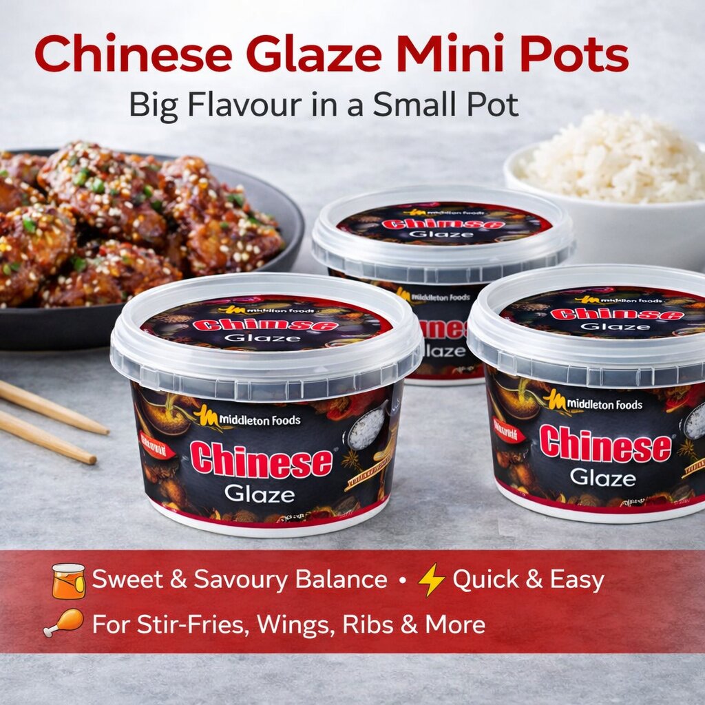 Middleton Chinese Glaze Mini Pot delivers a balanced sweet and savoury flavour inspired by classic oriental-style cooking. With a distinctive aniseed aroma and the warming depth of traditional five spice, this glaze creates a rich, aromatic finish that works beautifully with chicken, pork, duck or stir-fried vegetables.