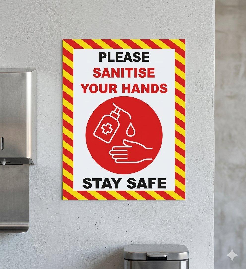 The Please Sanitise Hands Sign is a clear and effective way to promote good hygiene practices in any environment. Designed with a strong adhesive backing, it can be easily applied to walls, doors, or other smooth surfaces without the need for additional fixings.