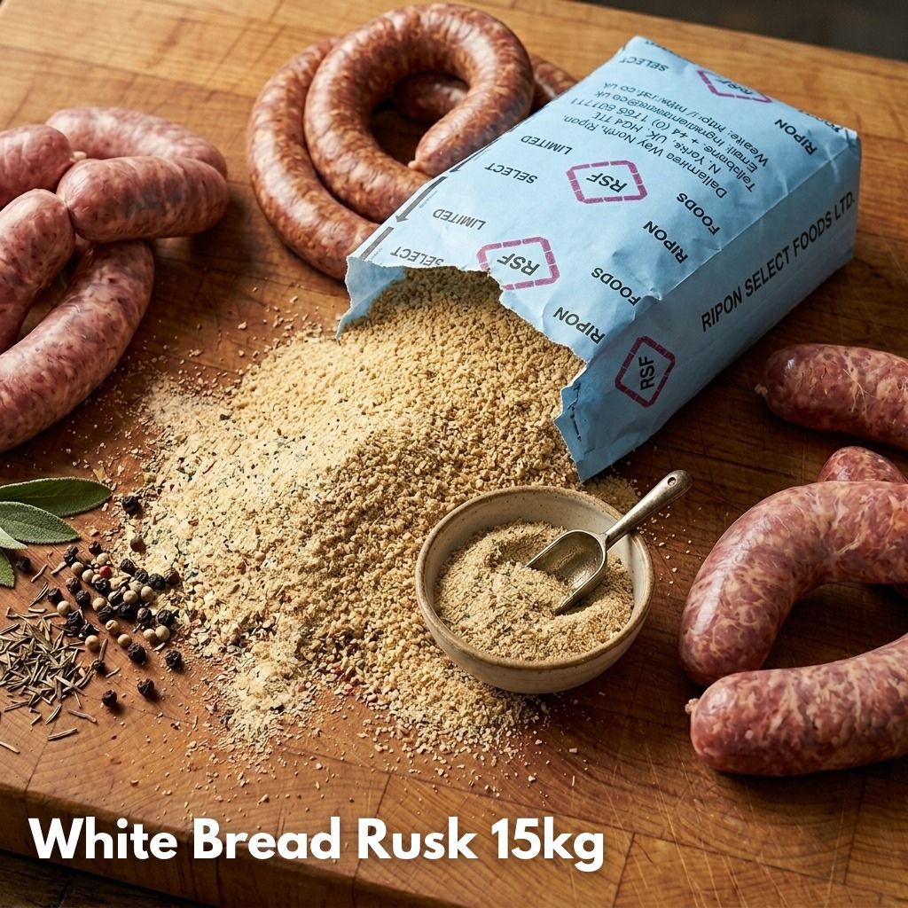 Ripon BR4 White Bread Rusk is a trusted, professional-grade ingredient widely used in sausage production to achieve excellent texture, consistency, and yield. Made from high-quality white bread, it acts as an effective binder, helping to retain moisture and improve the overall structure of sausage mixes.
