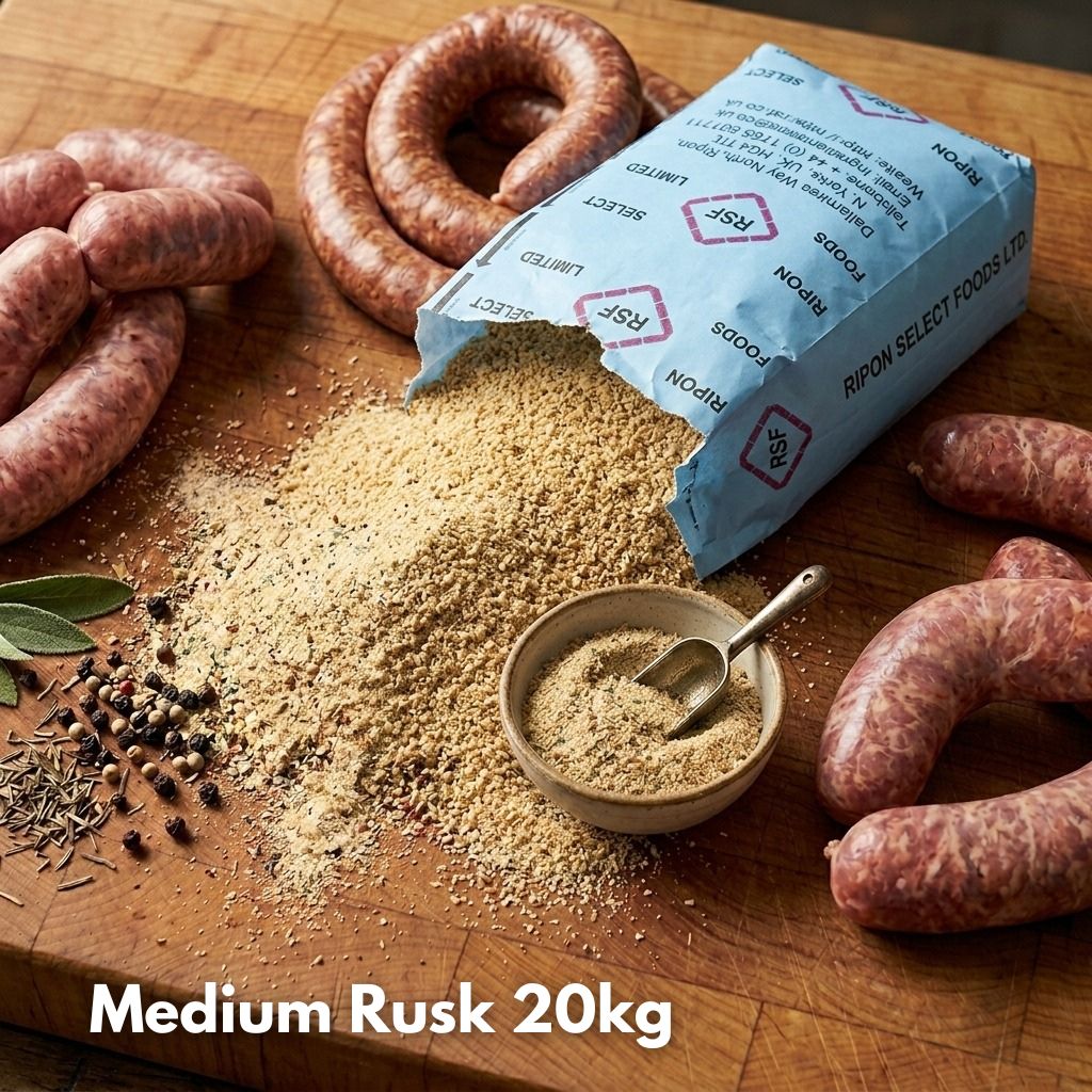 Ripon Medium Rusk is a high-quality sausage making ingredient designed to deliver excellent consistency, texture, and yield in every batch. Trusted by butchers and commercial sausage producers, this medium-grade rusk acts as an effective binder, helping to retain moisture and improve the structure of sausage mixes.